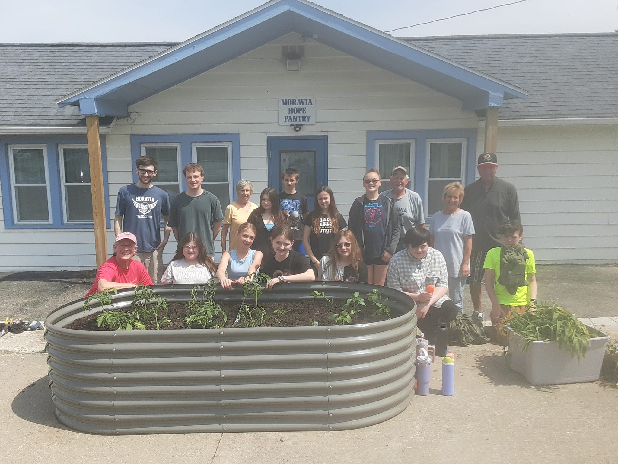 The Moravia Community Garden has recently turned the rundown horseshoe pits in their back yard into a garden and they plan to donate their harvest to the pantry!